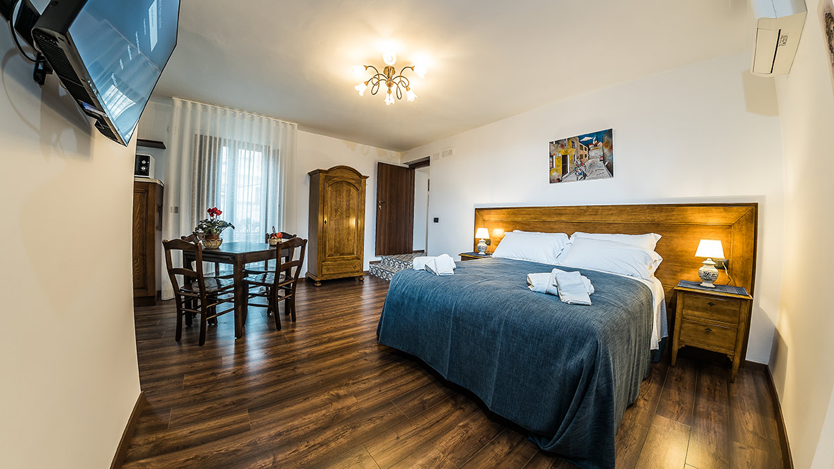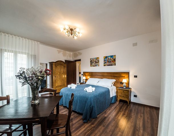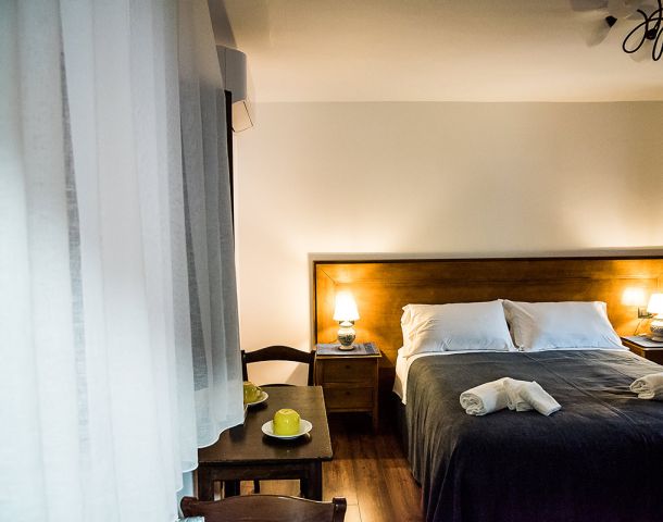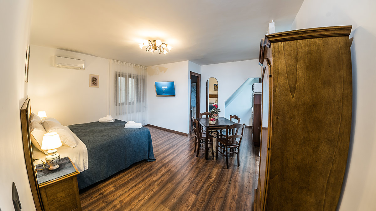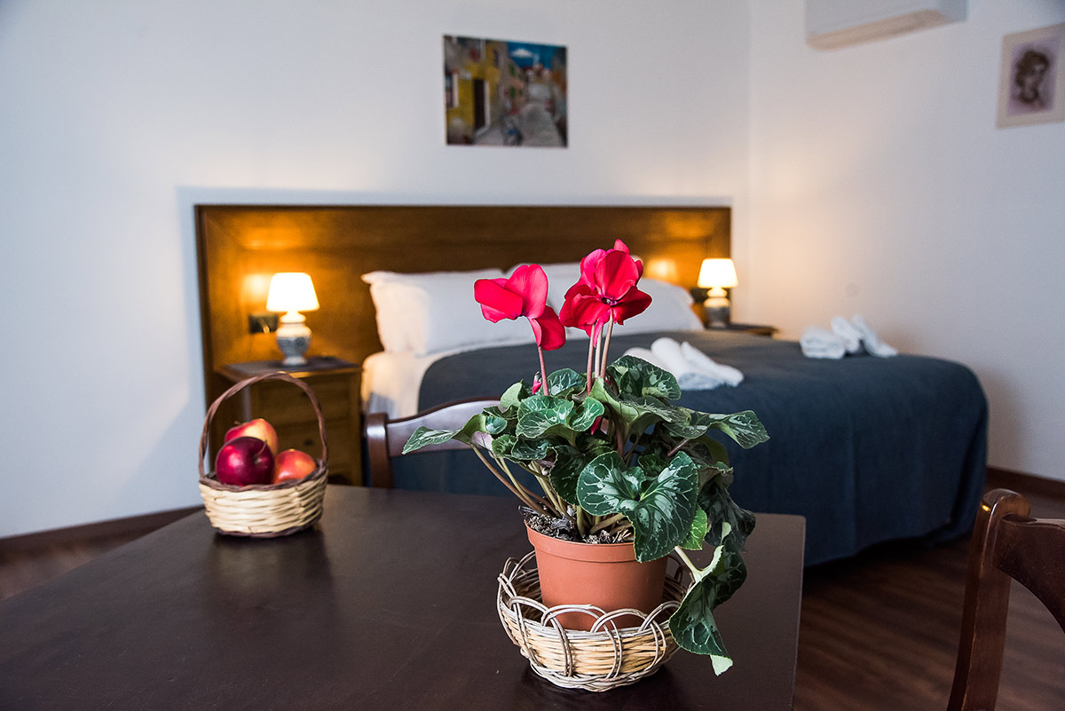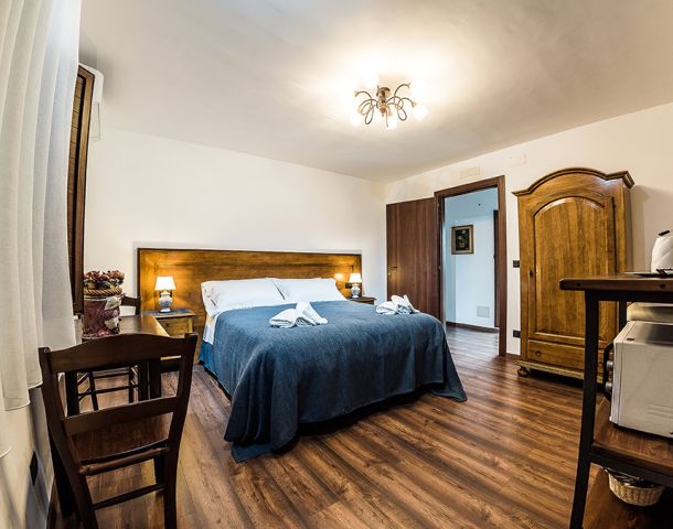 Camera tripla con tre letti singoli oppure letto matrimoniale e letto singolo.